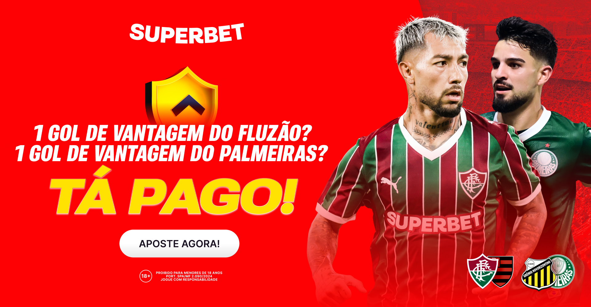 (APENAS APOSTAS FEITAS NOS MERCADOS SELECIONADOS). Se Fluminense e/ou Palmeiras abrir uma vantagem de 1 gol contra Flamengo e/ou Novorizontino no tempo regulamentar, a sua aposta já será considerada vencedora – mesmo que o jogo termine empatado ou com derrota!