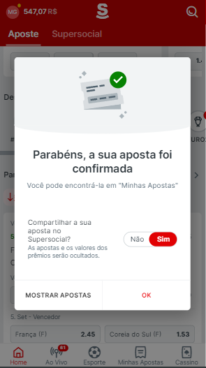 - Cupons compartilhados no SuperSocial imediatamente após a realização de uma aposta, cumprindo os requisitos da promoção citados acima.