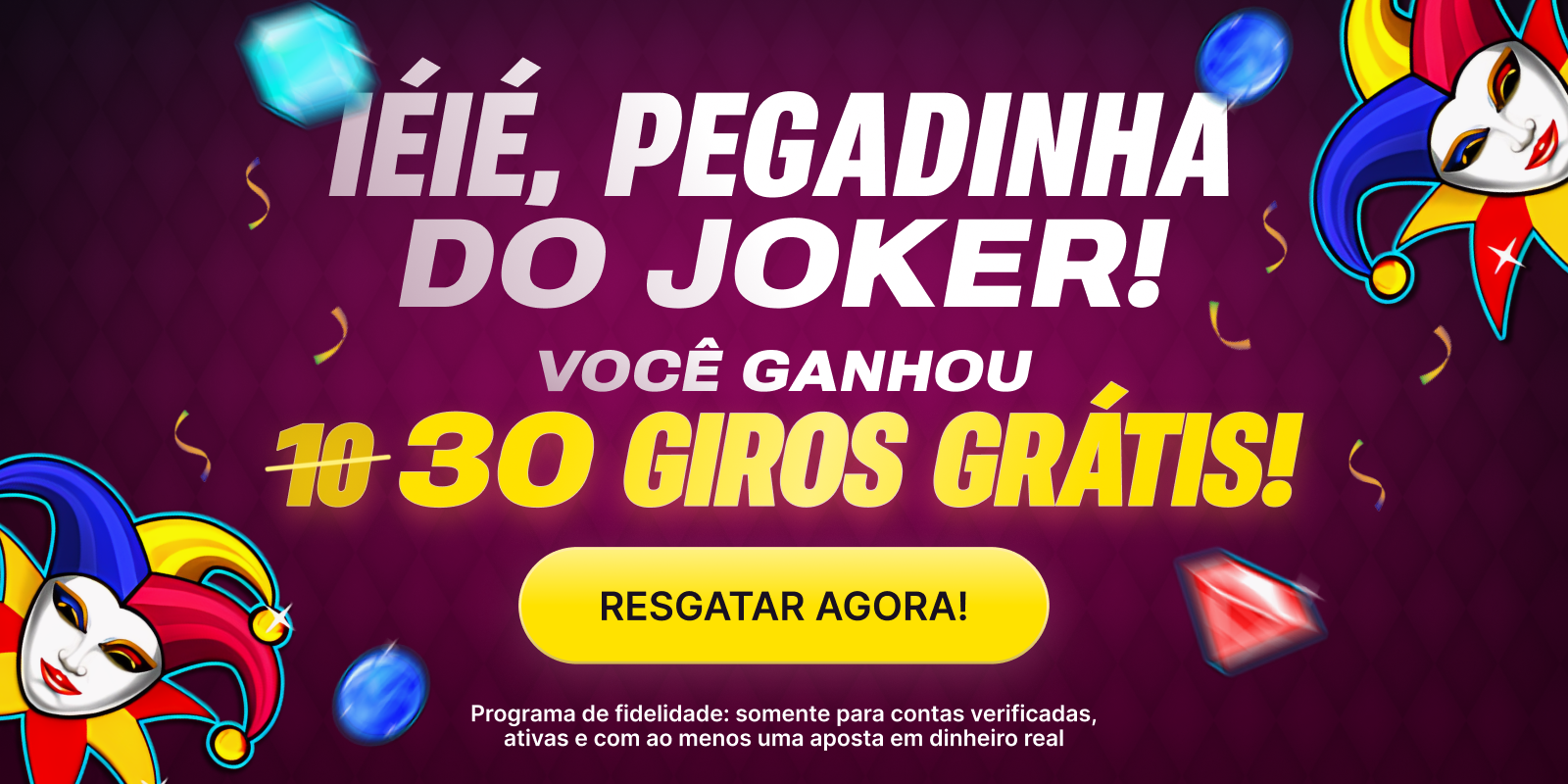 Ao receber seus giros, procure o jogo Joker’s Jewels e aproveite seus 30 Giros Grátis! 🎰